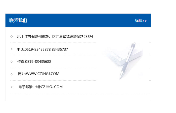 地址:常州市新北區友邦商務大廈1幢16、17層  電話:0519-85101652  傳真:0519-85112595  郵編:213022  網址:www.cz-jiayue_cn.whds110.com  郵箱:xiajifengaa@163.com